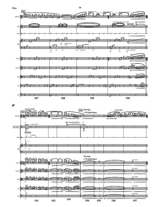 for flute soloist, 2(or four) percussion, harp & string orchestra (6-6-4-3-1 minimum, can be expanded)